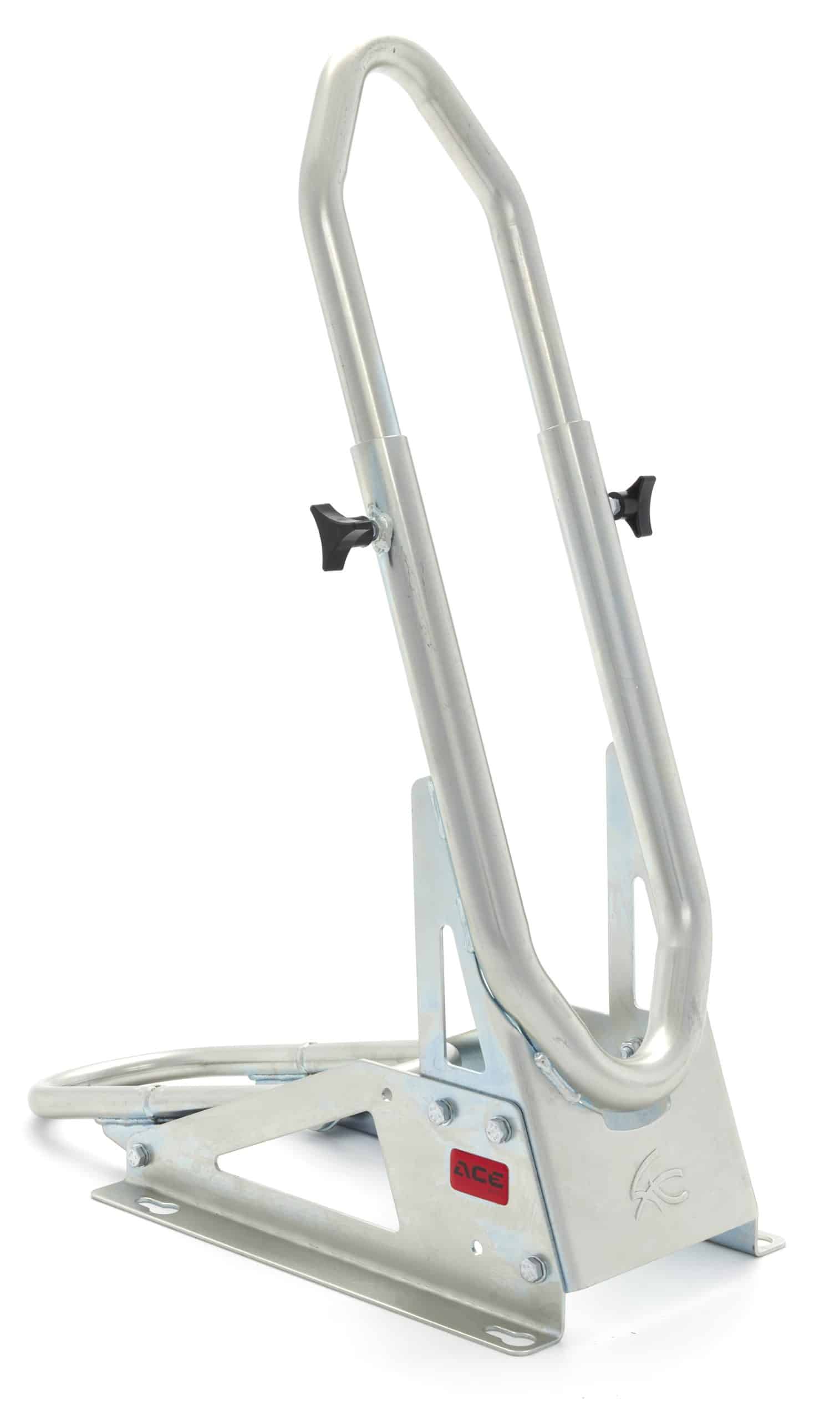 Fix your motocross or enduro bike to a trailer or van in the blink of an eye with the Acebikes Steadystand. This wheel clamp makes good use of gravity. You drive the bike in and it anchors itself with its own weight. This makes it easy to further secure the motorcycle on your own with tensioning straps.