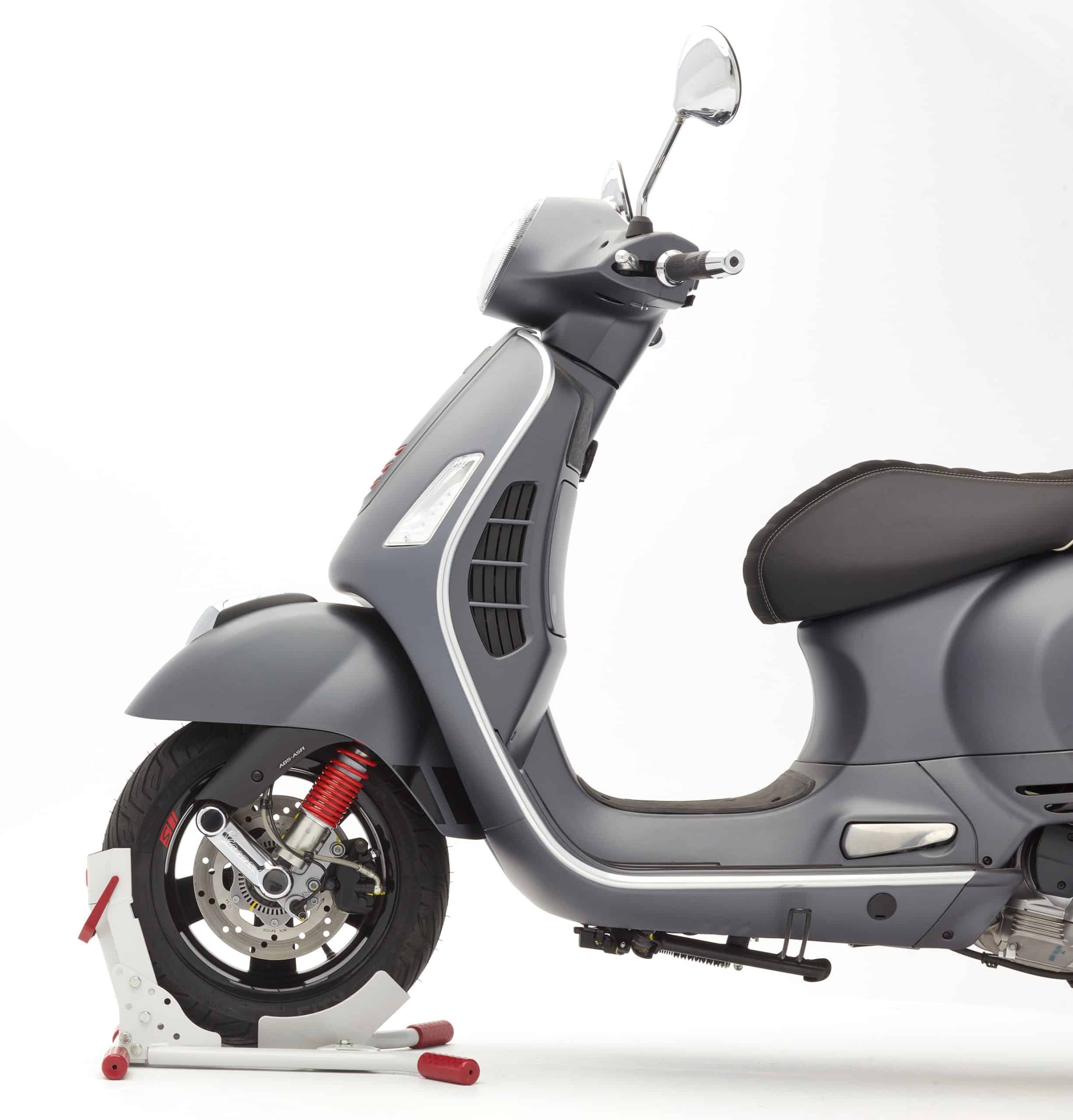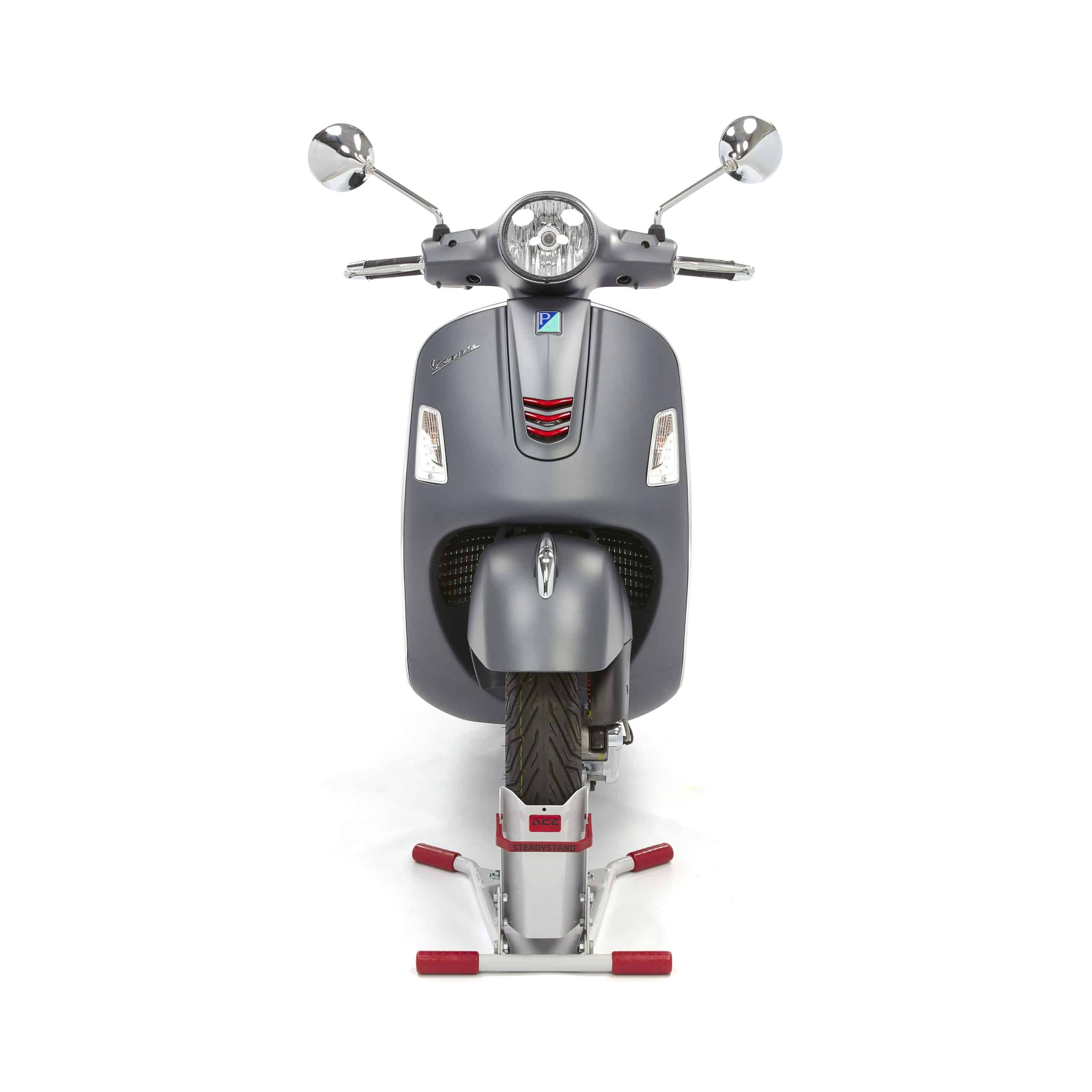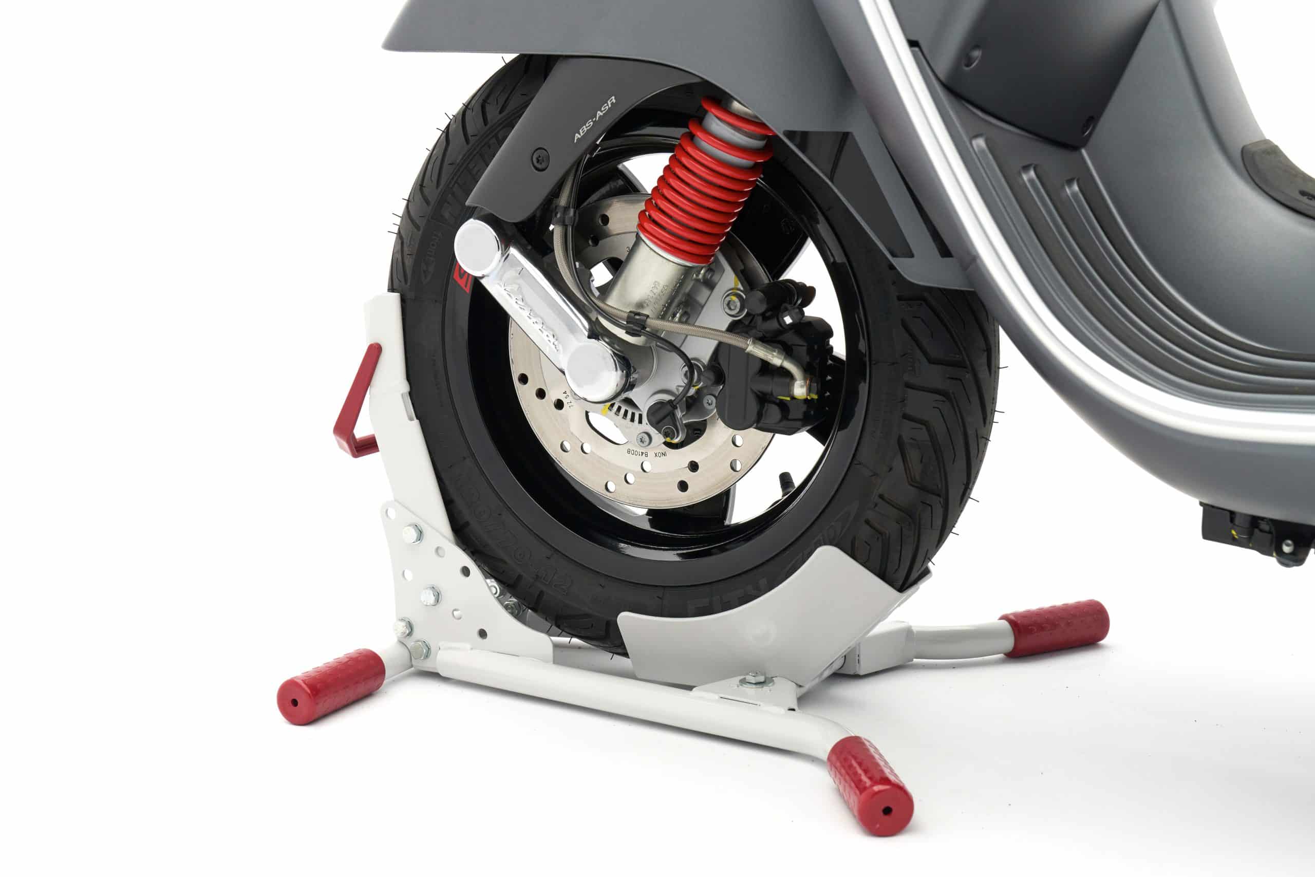 A Steadystand allows you to safely park a scooter. And we’re not just thinking about the garage or on the street, but also in a motorhome or trailer, where you definitely want to keep your front wheel firmly in the same place.