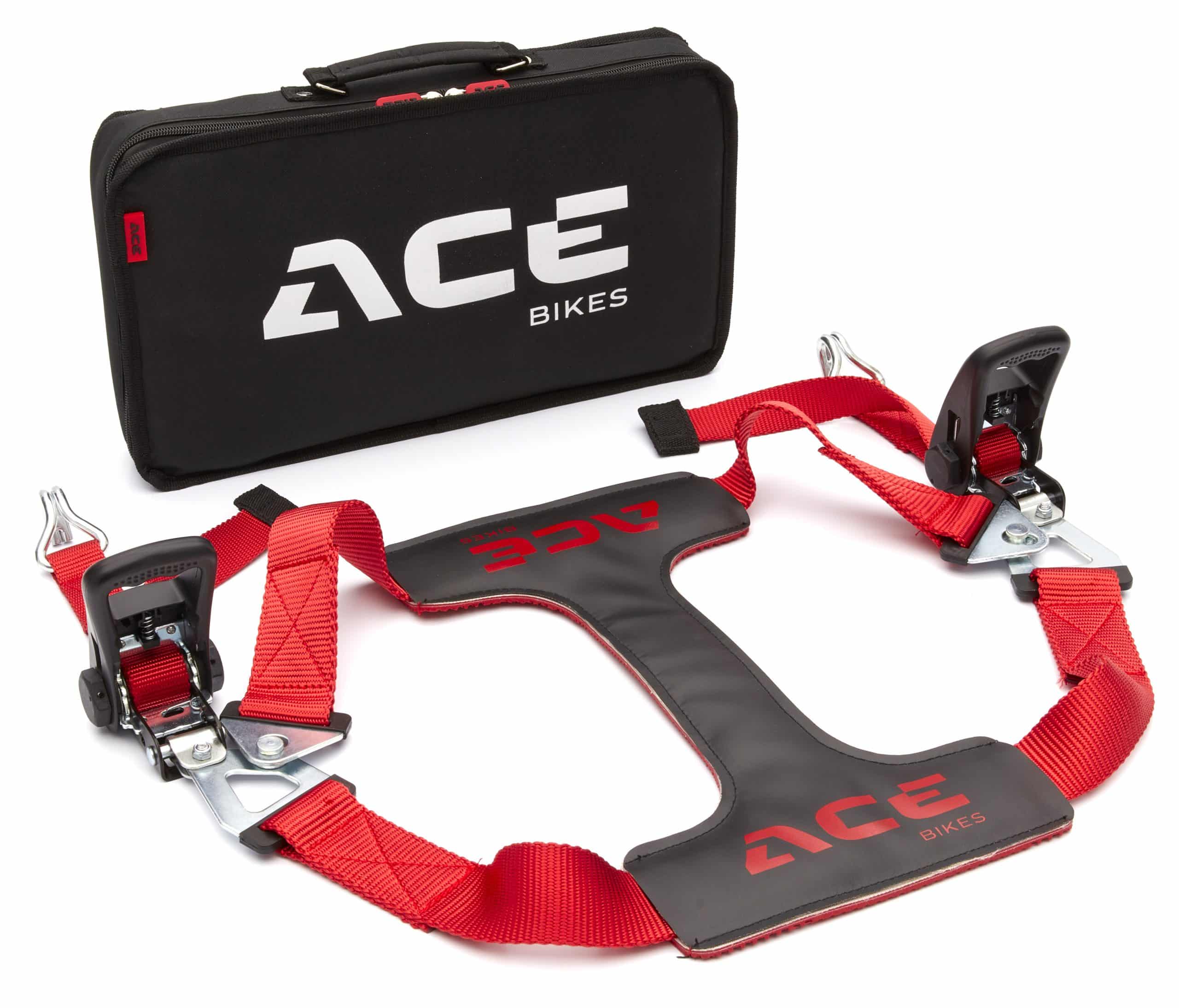 Thanks to the flexible material, the TyreFix Pro fits all tyre sizes. The TyreFix Pro is fitted with special friction material to prevent movement of the bike. The construction consists of separate elements, making assembly and disassembly easy. The polyester straps are 65 cm long, the system is made with heavy duty materials. The maximum distance between the middle of the strap and the attachment point is approx. 90 cm.