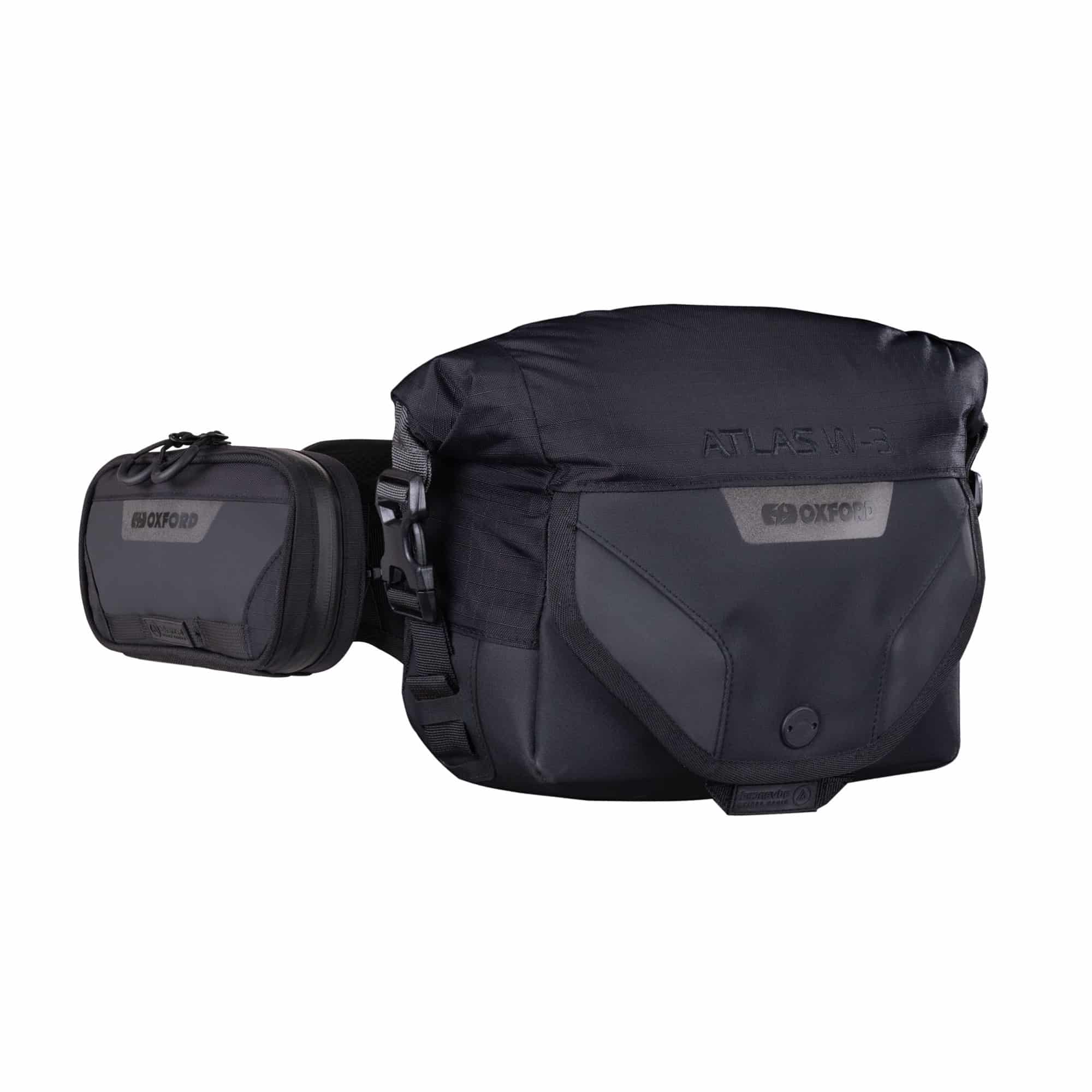 This combination includes a 3-litre capacity large Waist Pack with an additional 0.8L smaller Belt Pack that fit together using a MOLLE-compatible system.