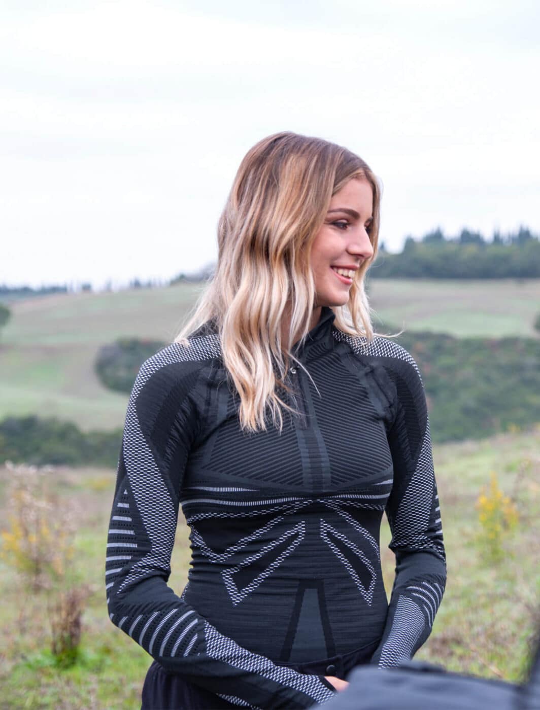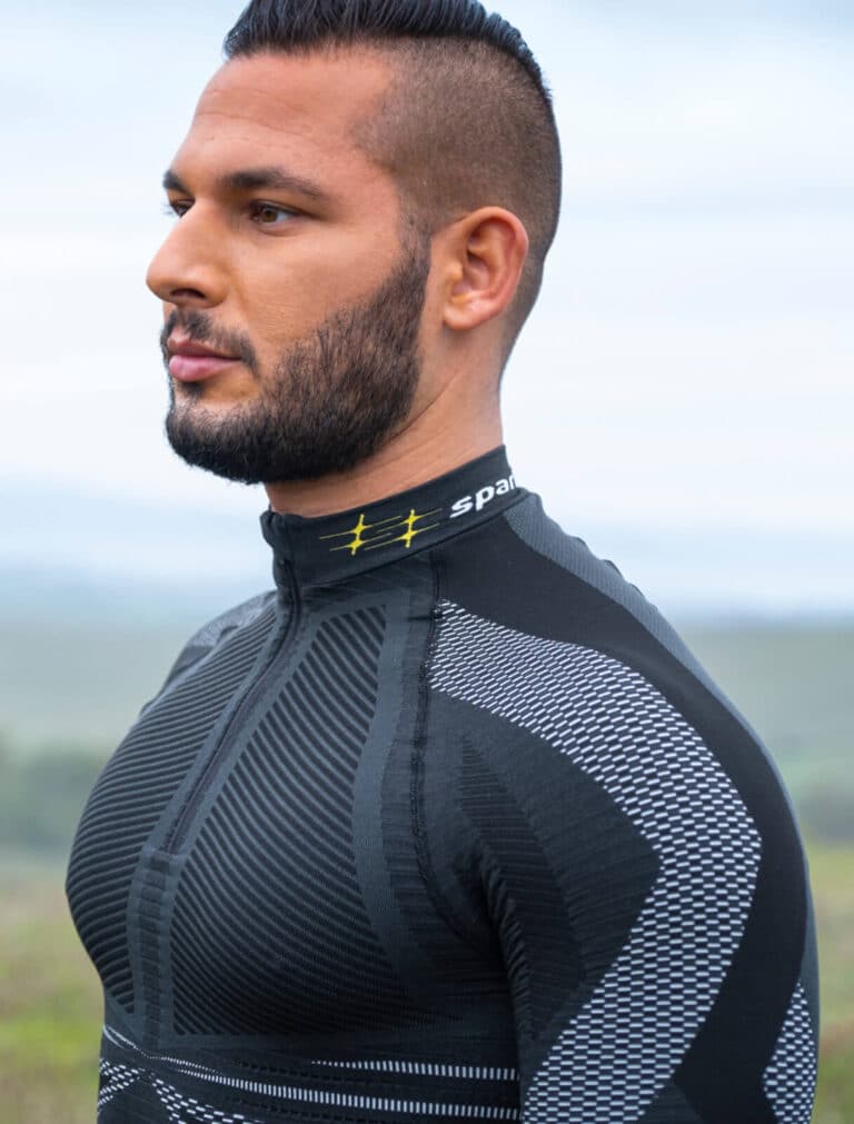 The extensive 3D knit texture also ensures optimal ergonomics in the areas of greatest contact. The design of functional details such as the buttonhole at the cuff and the zip cover at the collar contribute to versatility in all high-performance situations.