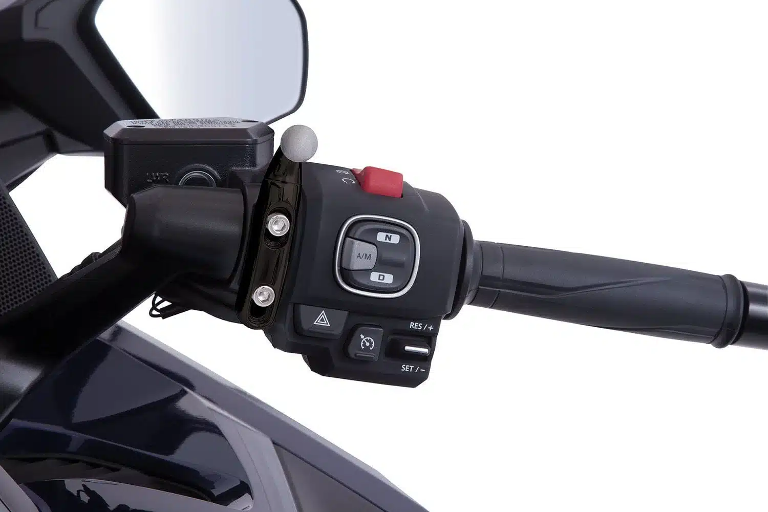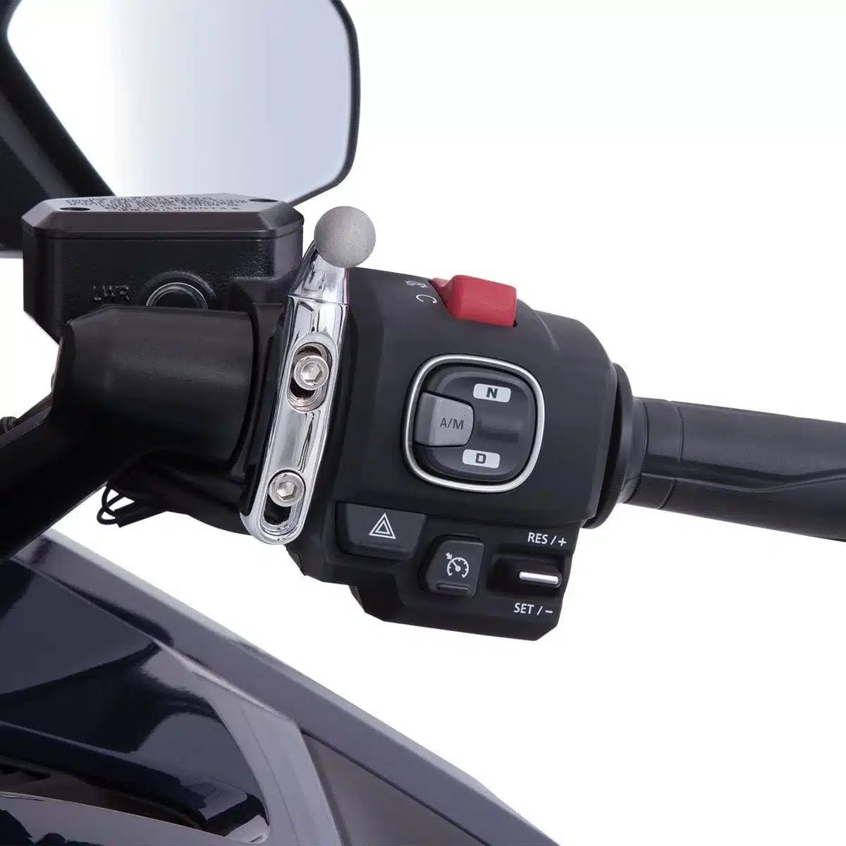 Ciro Goldstrike™ Left Side Accessory Mount – Black, 58111. Fits: 2018-up Gold Wing DCT, 2018-up Gold Wing Tour DCT, 2018-up Gold Wing Tour DCT Airbag. The Goldstrike left side accessory mount for DCT models puts a ball on your left hand controls. This can be used to mount a variety of Goldstrike accessories including the Goldstrike Smartphone Holder and the Goldstrike Drink Holders. Using this simple ball mount design, you may easily remove your accessory when not in use, and the mount blends right into your controls. 360 degree swivel and modular capabilities. Fully adjustable mounting system. Available in black to match your controls. 360° swivel in two directions. 3 year warranty. 58111