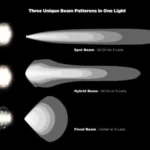 - Dual-Beam Technology – Independent control (and dimming) of centre flood beam, outer spot beam, or all-on hybrid beam