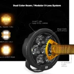 - Modular Snap-On X-Lens – Enables customizable beam shape and colour on-the-fly. Interchange able centre flood beam colour in white, amber, or selective yellow