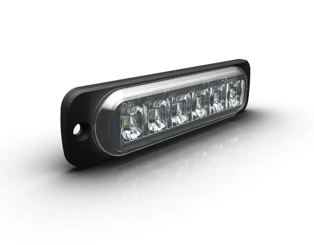 Like emergency strobe lights, our DRL optics are designed to concentrate the light at the source as opposed to project it down the road. While ideal for daytime and nighttime conspicuity, these lights will also through a noticeable spread of fill lighting at night on the immediate road ahead. Available in White and Amber