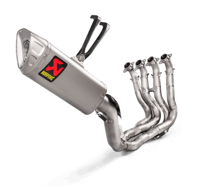 This full system is complete with a lightweight titanium muffler and stainless steel headers, providing a weight savings of over 20% alongside increased power and torque gains.