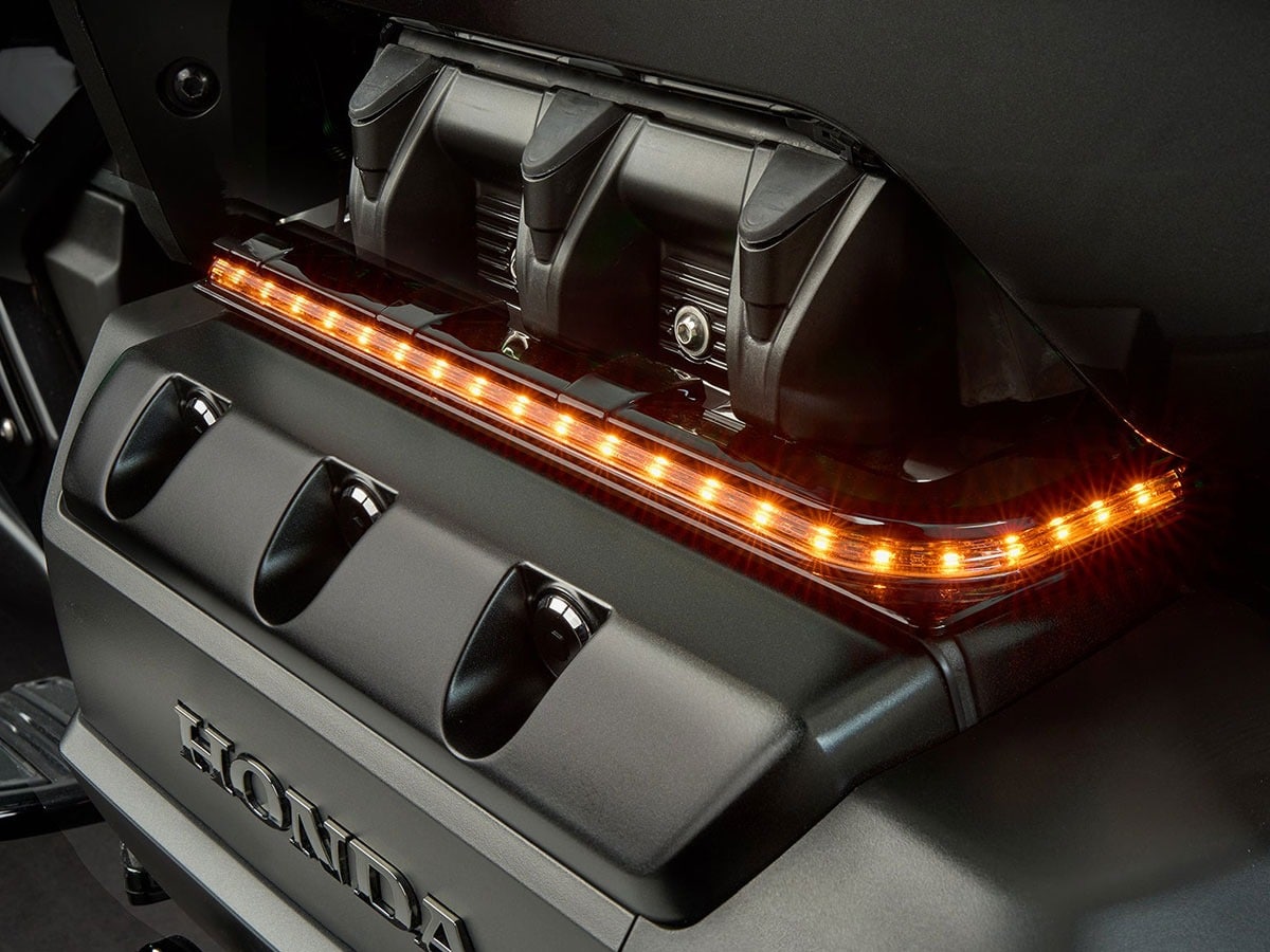 Goldstrike LED Engine Lighting Panels are the go-to part to dress up the top of the cylinder heads. These slim, chrome housings and bright amber LED running lights create remarkable visibility combined with unmistakable Goldstrike style.