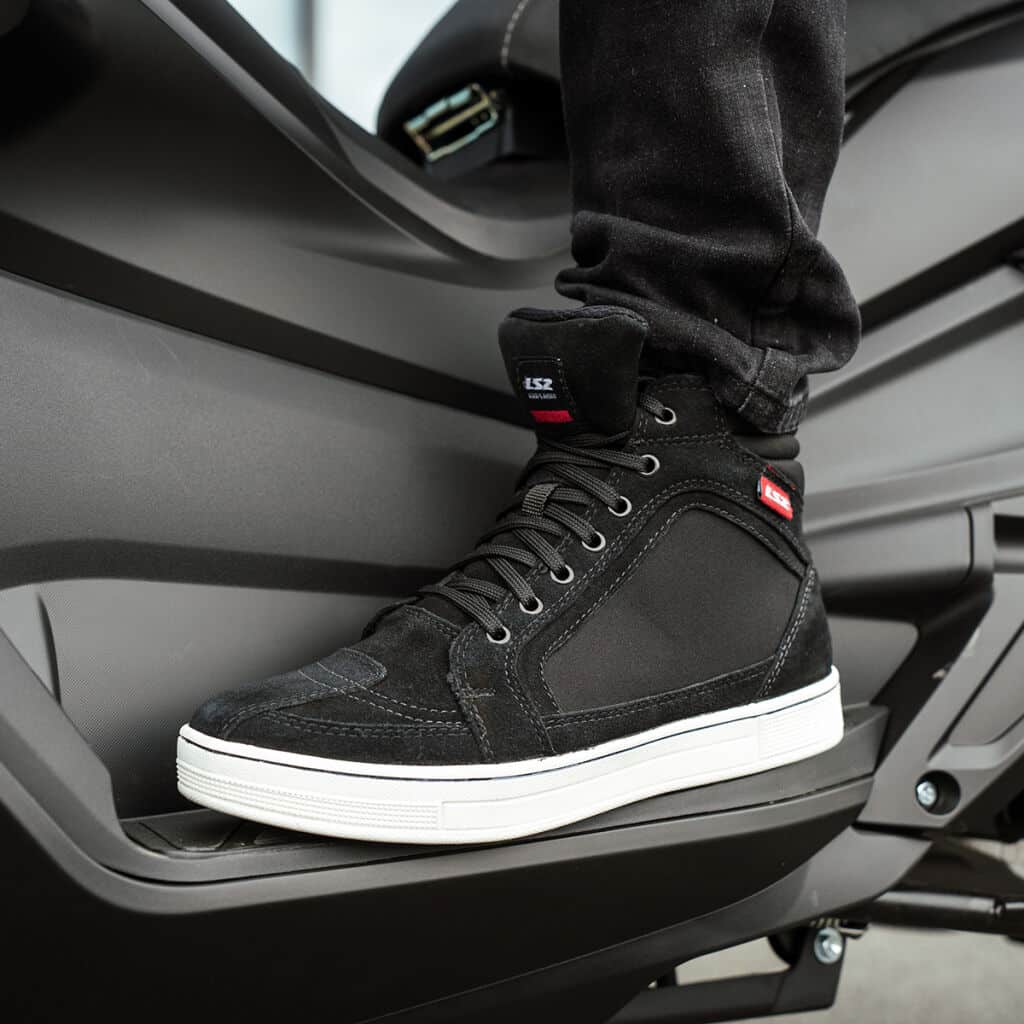 These biker boots are made of suede, which is durable and comfortable to the touch. The boots have foam reinforcements on the ankles to protect your joints from impact and injury. There are solid reinforcements on the heel and toe to provide stability and support for your feet. The sole is high quality and slip-resistant The LS2 DORON MAN BOOTS BLACK are a great choice for anyone looking for a modern and comfortable shoe that is suitable for both the city and the road.