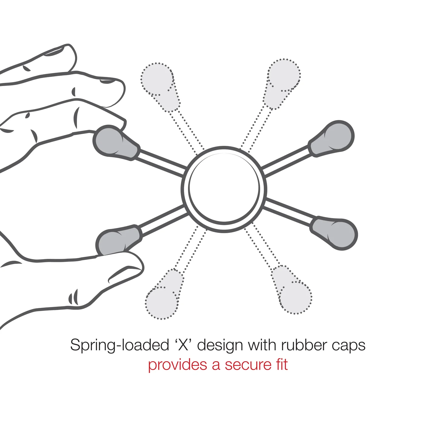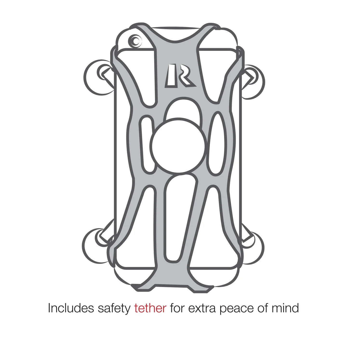 - Spring-loaded ‘X’ design for large phones with rubber caps sports great holding power without hiding your phone; includes optional device tether for peace of mind during rugged use