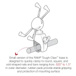 - Small version of the RAM® Tough-Claw™ base is designed to quickly clamp to round, square, and odd-shaped rails and bars ranging from .625″ to 1.14″ in outer diameter; rubber pads provide stable gripping and protection of mounting surface