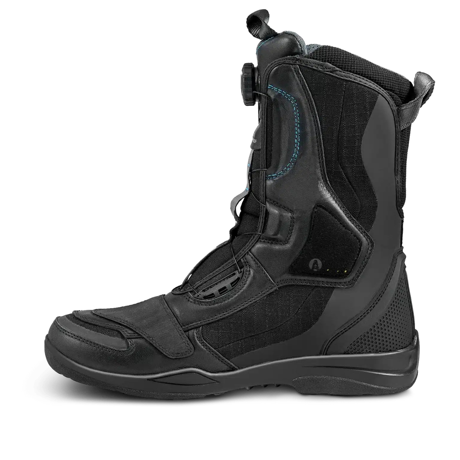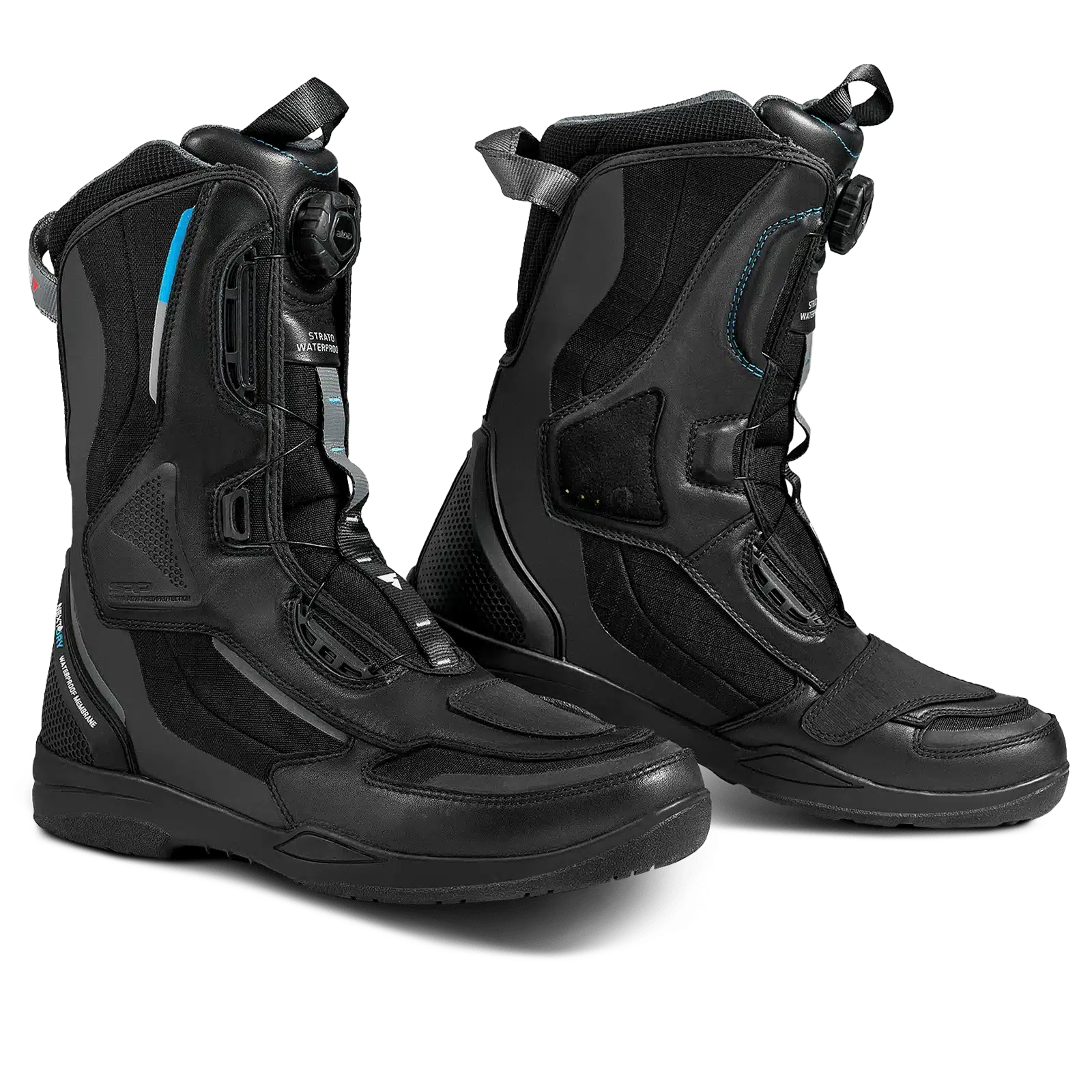 With the new season, the well-known, ventilated STRATO boots are getting an extra performance boost. A new outer material with water repellent properties was used to create the STRATO WATERPROOF boots. Thanks to the NextDry™ waterproof membrane, you don’t have to worry about unexpected rain while riding. The boots are lightweight, mid-height, designed for everyday use in the city and longer trips. The refined construction of the boot has been fitted with reinforcements in strategic places to ensure safety and cushioning. The STRATO WP features a lacing system with a drawstring strap and ATOP knob, which is easy to operate with one hand even when wearing a glove. Finding the perfect fit will be a breeze thanks to the ATOP mechanism. They have a special pad for changing gears with an increased grip of the rubberised surface. What’s more, they’re well equipped for night rides thanks to the large Night Vision System panels that actually look like part of the construction. The STRATO WP boot is the perfect combination of protection, durability and comfort.