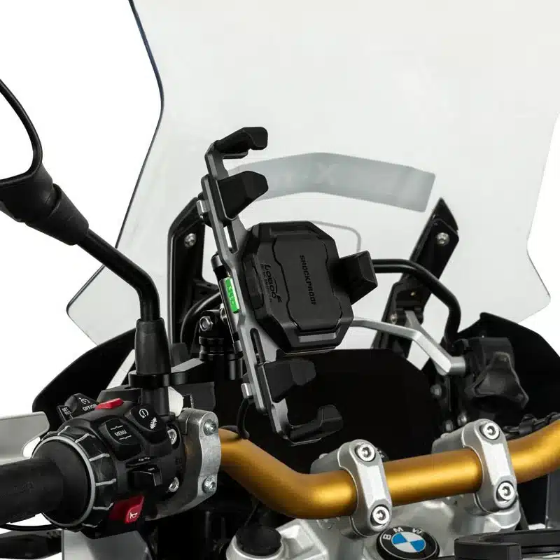 Securely mount your phone to handlebar, mirror or fork stem. Protect your phone with our Vibration Dampener. Charging options available.