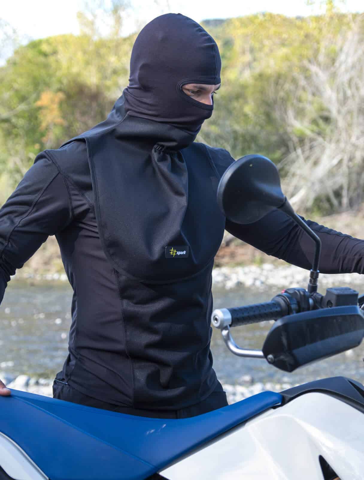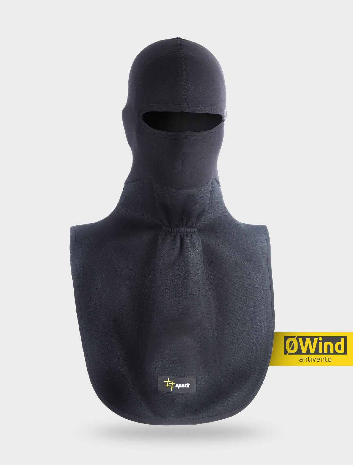 The Stivy+ balaclava is designed to offer front and rear thermal and wind protection, extending to the chin, throat, neck, chest and shoulders.